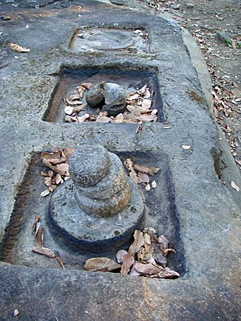 Sitting atop one of the carved rock-beds was this three linga-yoni carved on top of the natural sandstone boulderLabels: Koh Ker