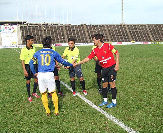 Great to see the two international teammates and club captains have time for a smile as they lead their teams onto the pitch in the Naga versus Khemara game