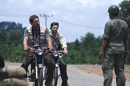 Smith as Sean and Maguire as Dana get stopped at a roadblock It looks like location filming in Kampot will be finished this week for the Sean Flynn and Dana Stone-inspired movie The Road to Freedom. Under the control of baby-faced director Brendan Moriarty, who used to live in Kampot, filming is ahead of schedule, with the fictional movie slated for completion early in 2010. With Joshua Fredric Smith as Sean and Scott Maguire as Dana, the film has two quality lead actors out front, supported by experienced actor/producer Tom Proctor. Flynn and Stone, like many of their photojournalist friends at the time, took one risk too many and disappeared in 1970, captured by Khmer Rouge forces. It's a story that has captured the imagination of many, particularly as Flynn was the son of his illustrious father Errol Flynn, and was an actor himself before turning his back on Hollywood to cover the war in Cambodia. Here's a couple of photos from the set of The Road to Freedom, which used locations both inside and outside the town of Kampot. Follow the film's progress here.